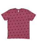 4.5 oz., 60% combed ringspun cotton, 40% polyester; Natural Heather is 100% combed ringspun cotton; Printed star vintage fine jersey; Topstitched ribbed collar; Self-fabric back neck tape; Double-needle sleeves and bottom hem; Side seam construction; EasyTear™ label; 2% of all Code Five™ sales are donated to children of Fallen Soldiers Relief Fund, Inc. and Fisher House™;
